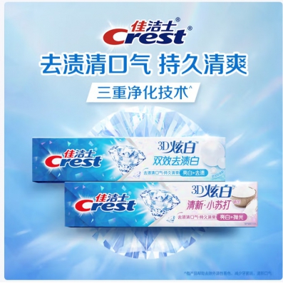 洁士3D炫白冰极薄荷牙膏170g含氟美白清新口气