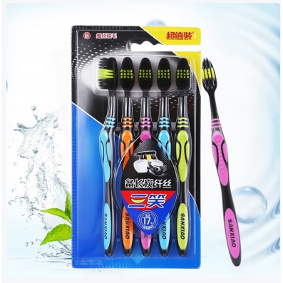 三笑碳纤丝牙刷含备长炭刷毛软毛细毛5支装家庭装小巧刷头清洁齿缝 碳纤丝牙刷 5支