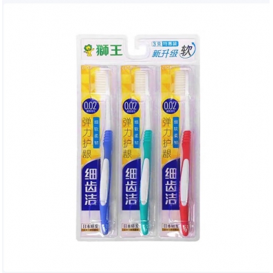 LION牙刷细齿洁弹力护龈0.02mm软毛细毛牙刷家庭套装男女通用 弹力护龈3支装 3支