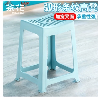 茶花 塑料凳子 家用条纹板凳 高方凳子46.6cm 颜色随机 1只装