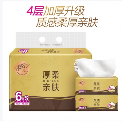 清风抽纸 原木金装4层 80抽6包S码 亲肤无刺激 卫生纸巾 餐巾纸