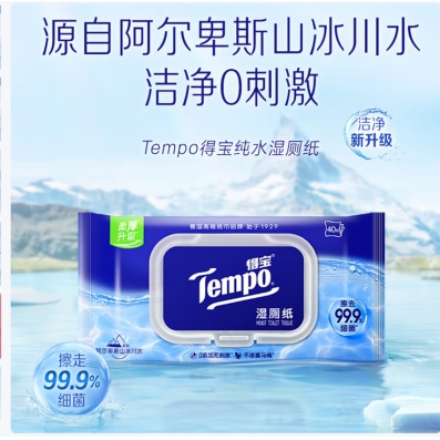 得宝 纯水湿厕纸 大尺寸40片*8包 深澈水感 可冲散 湿纸巾