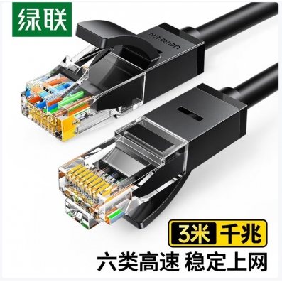 绿联NW102六类千兆高速宽带线CAT6类网络工程家用8芯双绞成品线黑色六类圆线-3米20161