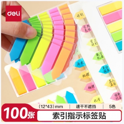 得力 100张 5色 荧光膜 指示标签贴 43*12mm箭头款 便利贴 记事贴 9064