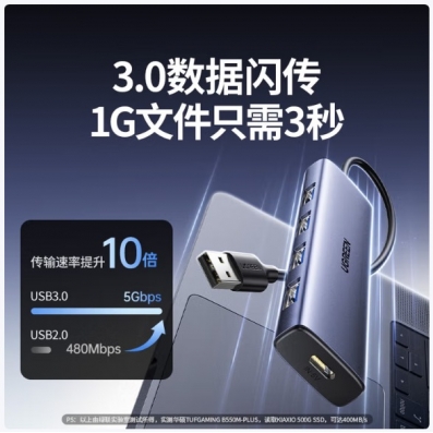 绿联USB扩展器3.0扩展坞 4口HUB集线器 1.5米 65802