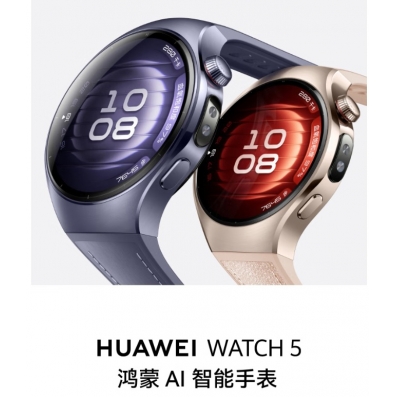 HUAWEI WATCH 5 46mm高端款航天级钛合金表壳银河紫素皮复合表带首创X-TAP智感窗鸿蒙腕上小艺eSIM通信