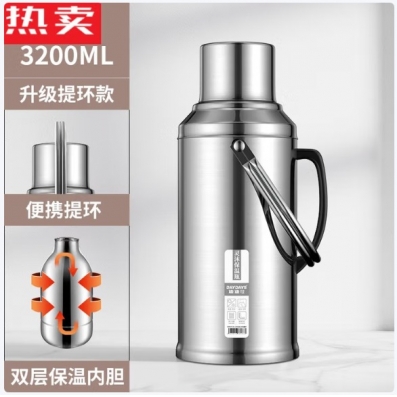 不锈钢热水瓶 保温瓶暖瓶暖壶 本色3.2升