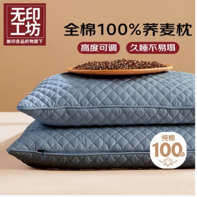 无印工坊 纯棉荞麦枕头 荞麦皮枕芯 灰色6斤 单只