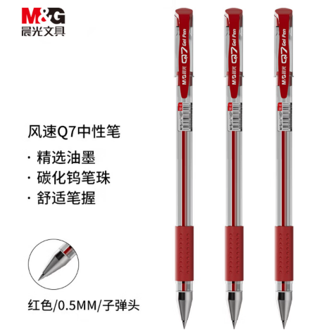 晨光(M&G)文具Q7 拔帽中性笔学生0.5红笔签字笔商务子弹头考试水笔办公用品 红色 12支/