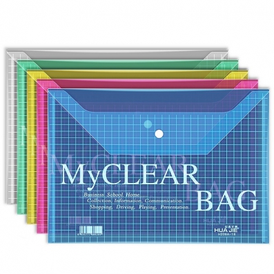 华杰12个装加厚大容量a4文件袋透明塑料按扣袋学生用收纳袋档案袋资料袋票据防水18c批发 蓝色格纹(12个装)H209A18c