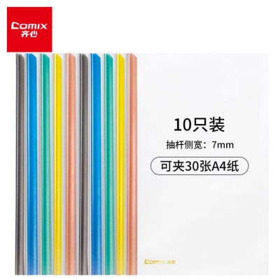 齐心(Comix) 10个装 A4彩色强夹力抽杆夹/报告夹/文件夹 EA85 办公文具