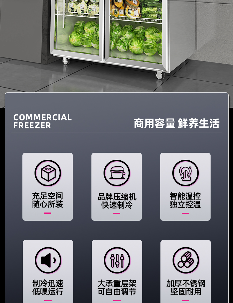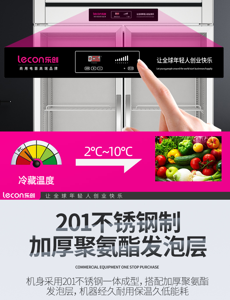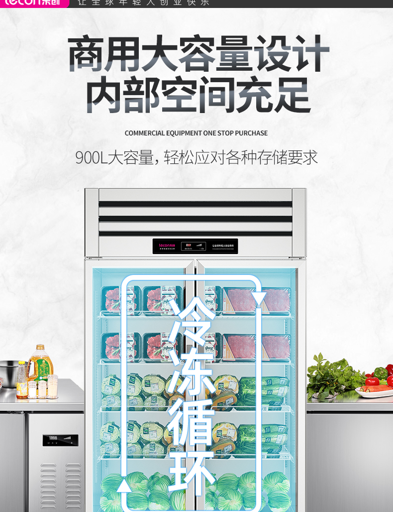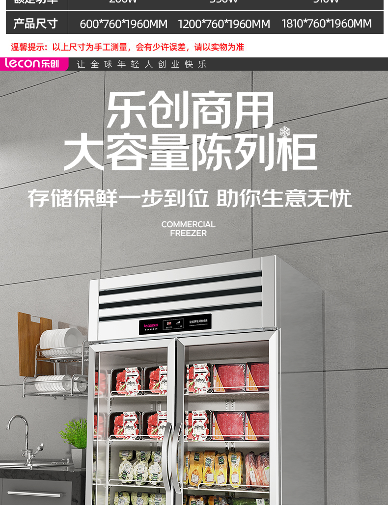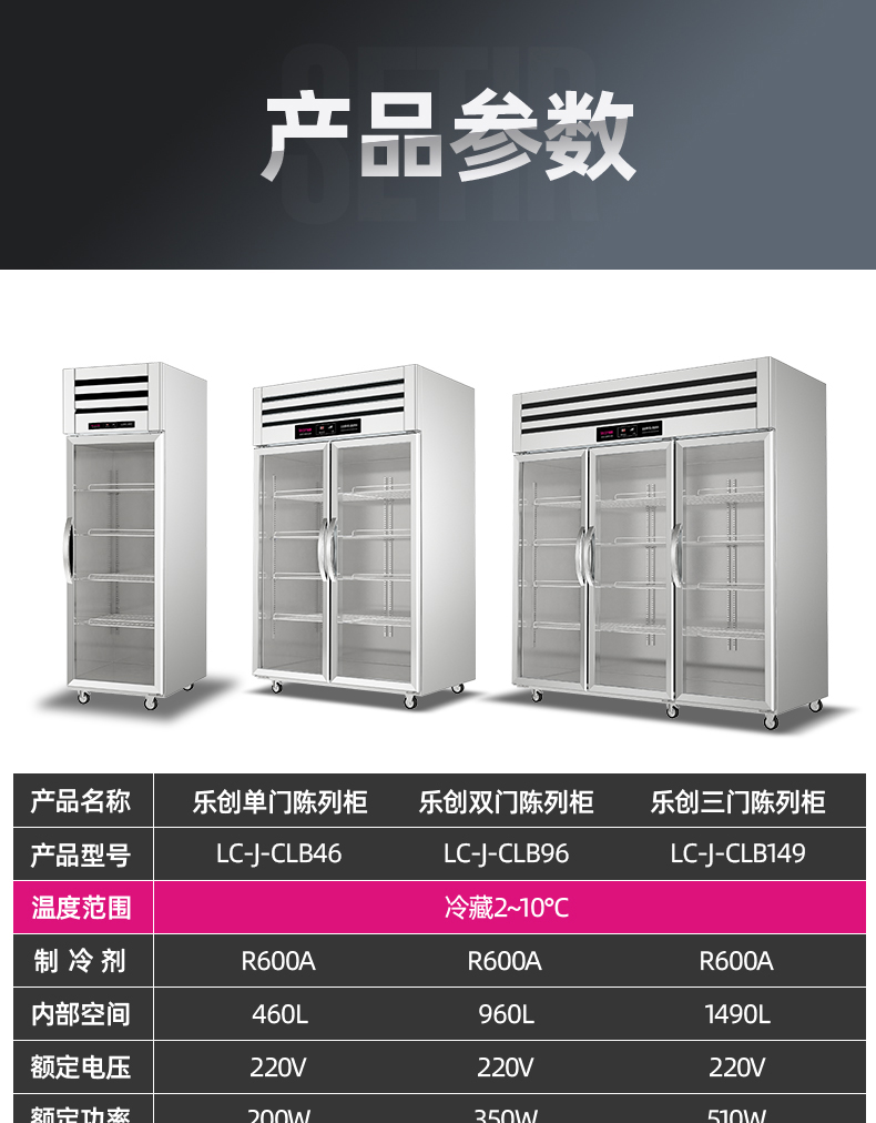 乐创(lecon)商用三门展示柜 立式保鲜陈列柜1490L 全冷藏 LC-J-CLB149