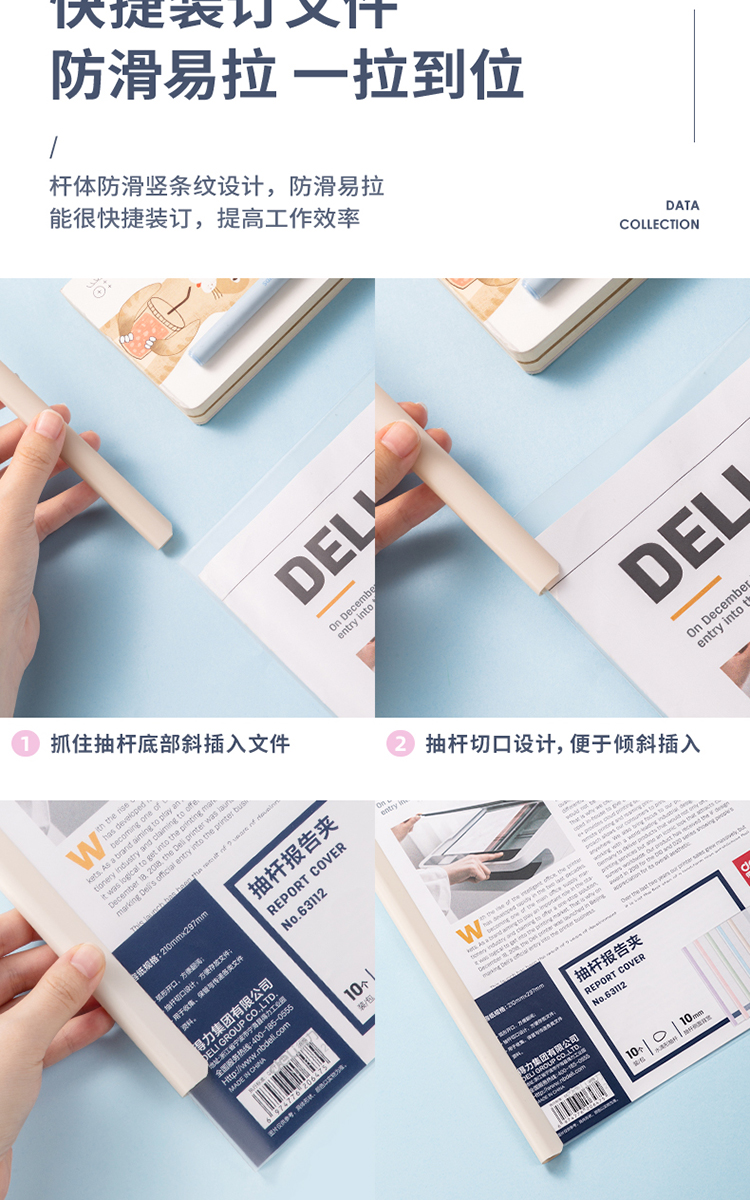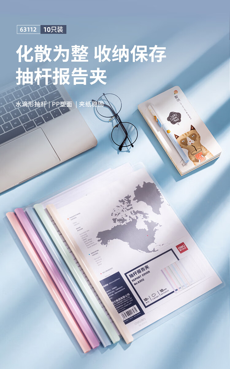 得力(deli)10只A4透明抽杆文件夹拉杆夹水滴杆 学生考试简历报告夹商务会议资料产检收纳 马卡龙色系63112