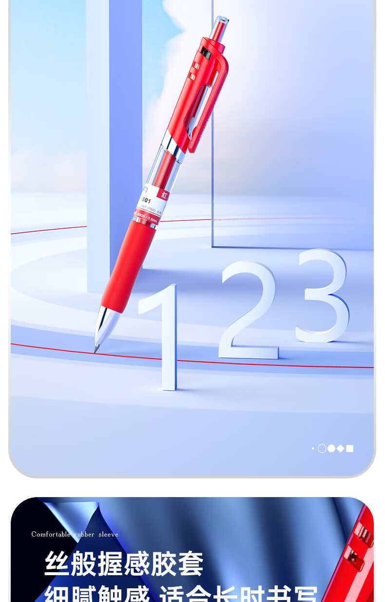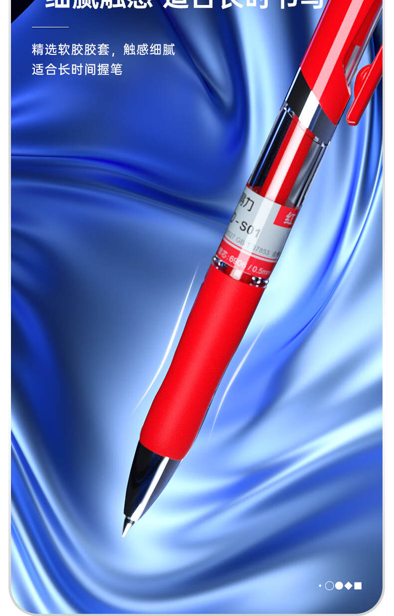 得力(deli)S01中性笔签字笔 0.5mm子弹头经典办公按动笔水笔 红色 12支/盒