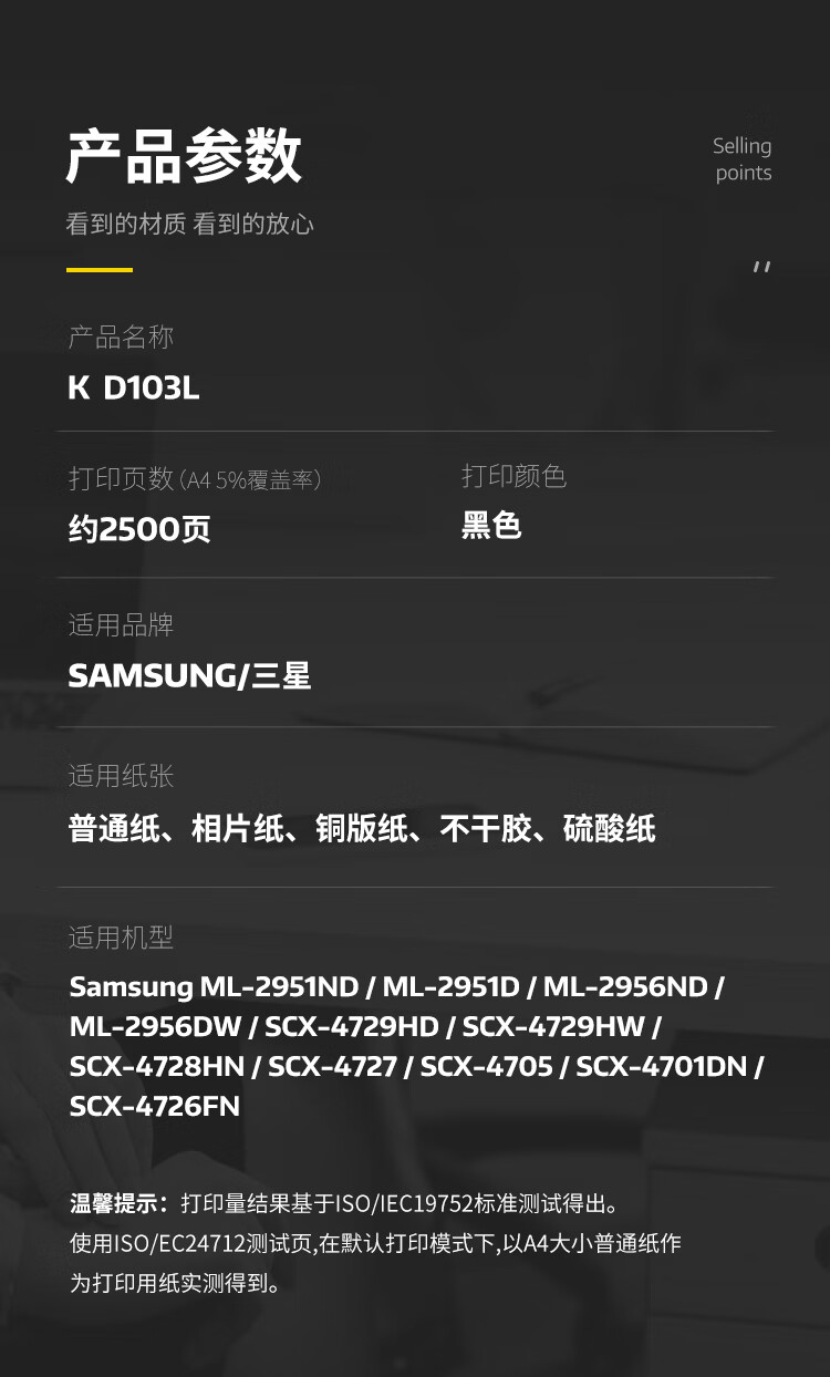 科思特MLT-D103L硒鼓 适用三星 SCS-4729HD/4728HN/ML-3956ND/ML-2951D/ML-2956DW/4701ND/4729HW黑色 专业版