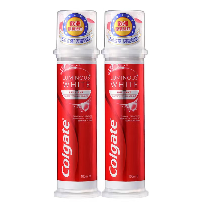 高露洁(Colgate)欧洲进口耀白去渍直立按压式泵式美白牙膏*2 去黄