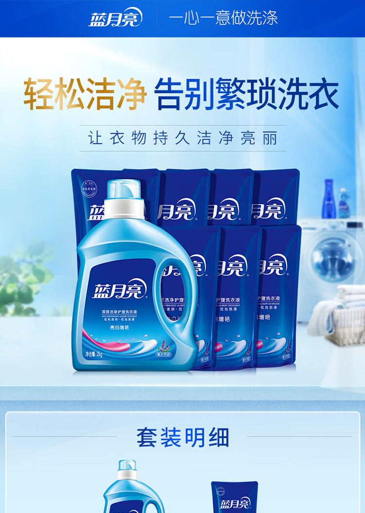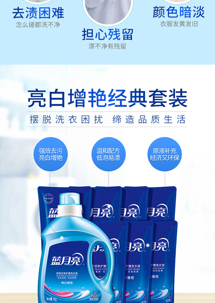 蓝月亮 洗衣液/清洗剂 薰衣草洗衣组合套装 薰衣草亮白增艳洗衣液2kg*1+薰衣草亮白增艳洗衣液袋装500g*7