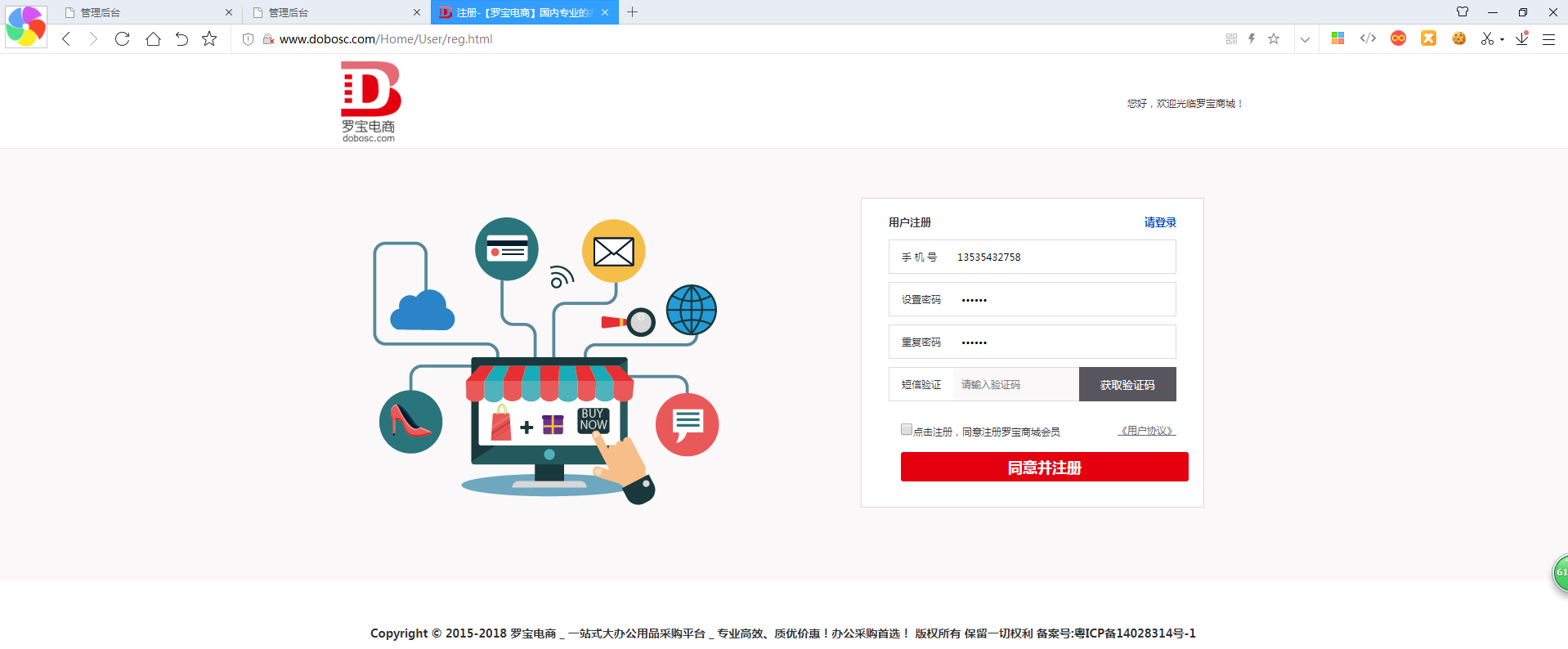 2.获取验证码,然后点击同意并注册,注册成功后,便可登录