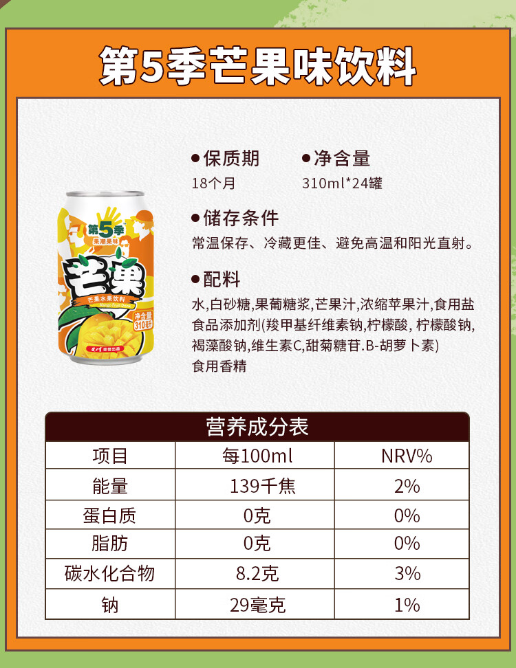 健力宝芒果果汁饮料310ml*24罐
