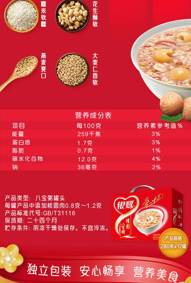 银鹭 八宝粥速食粥280g*12罐