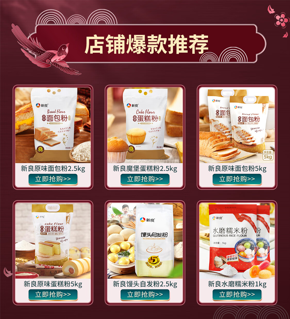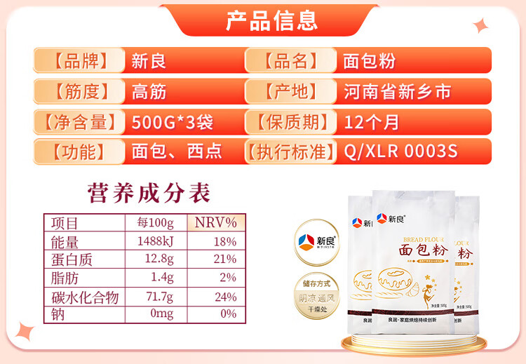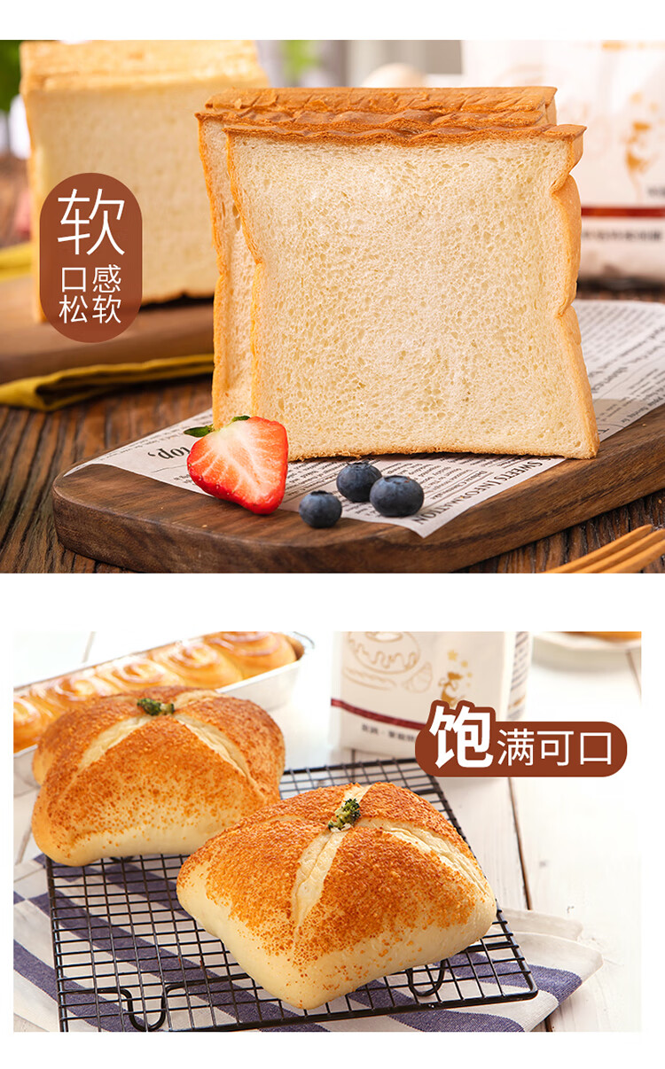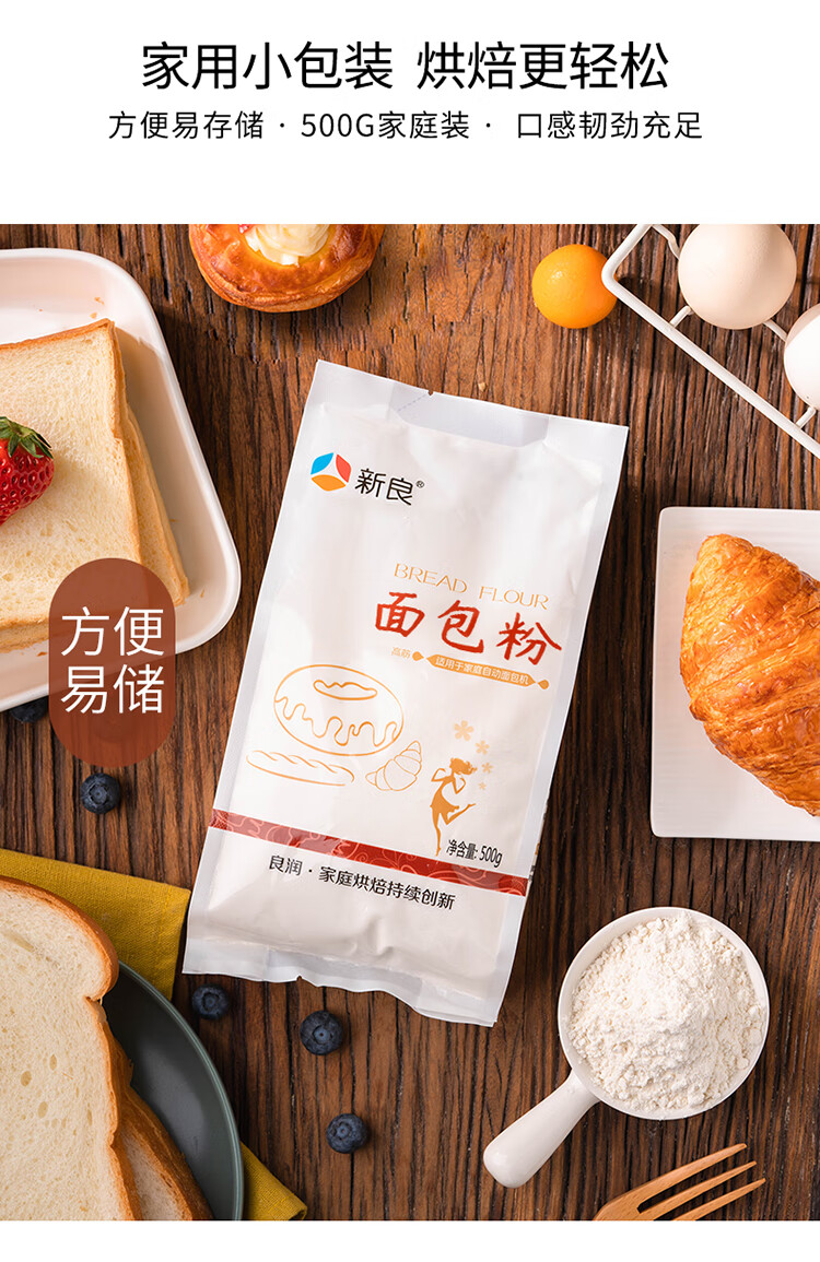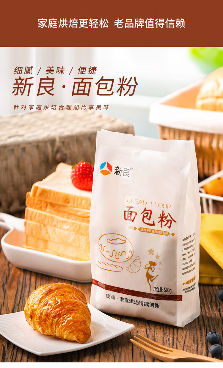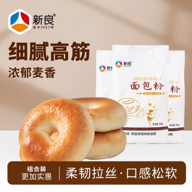 新良面包粉 高筋面粉 烘焙原料 手撕面包机用小麦粉 500g*3袋