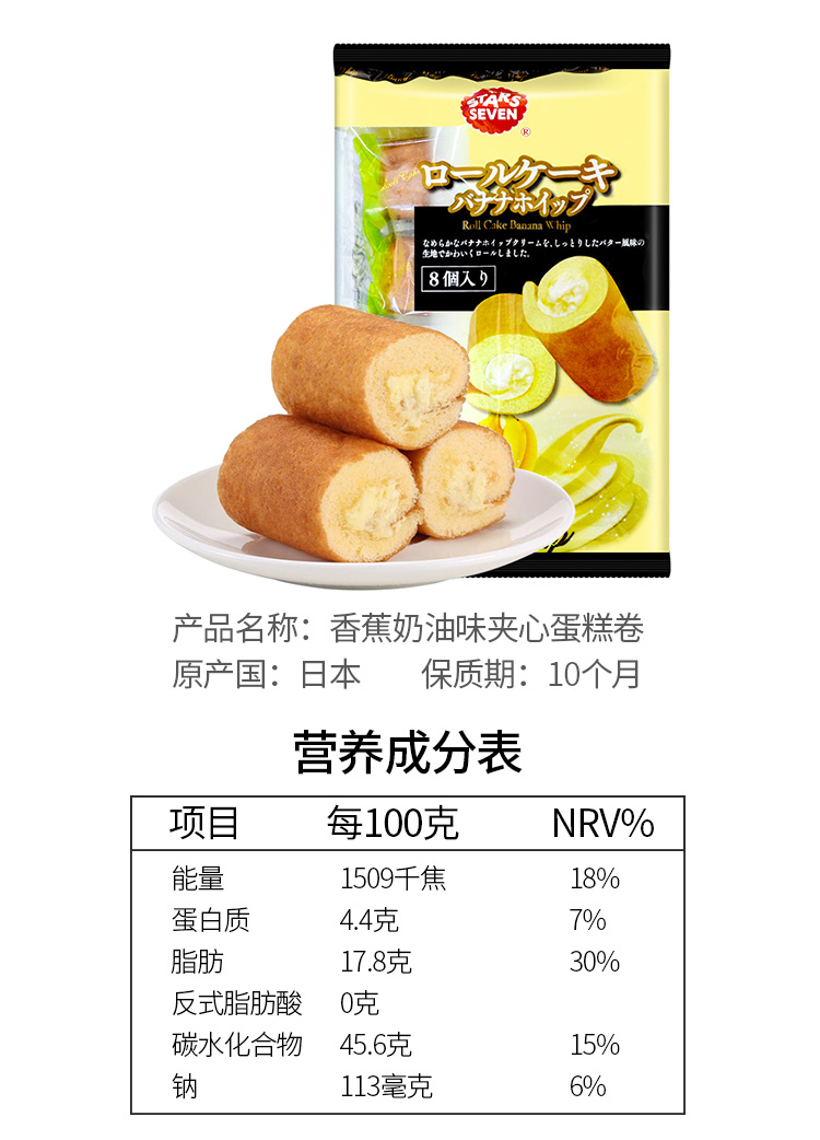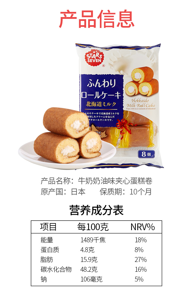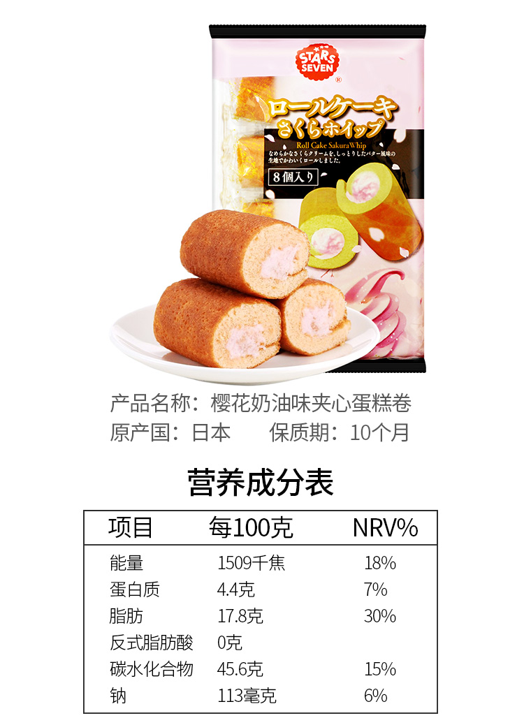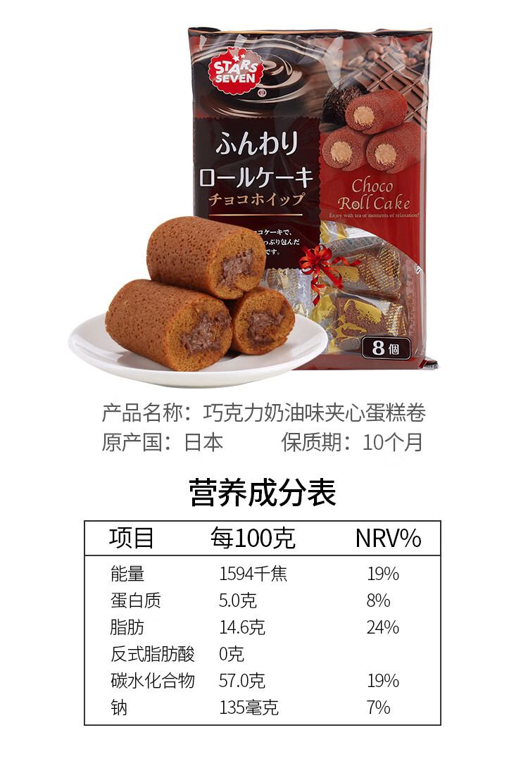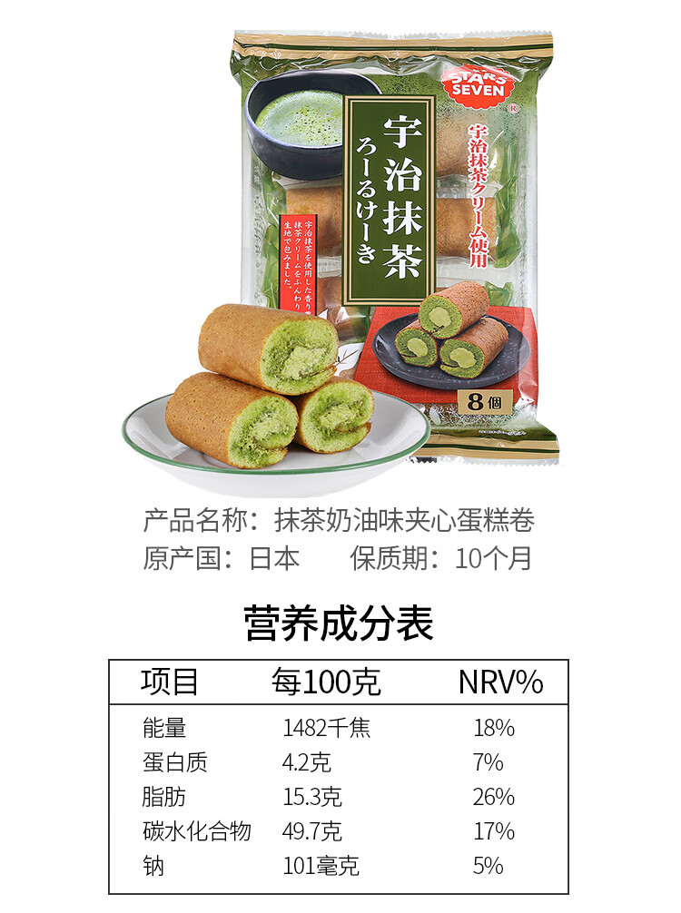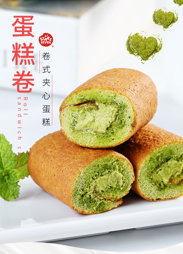 星七 抹茶夹心蛋糕卷136g/袋