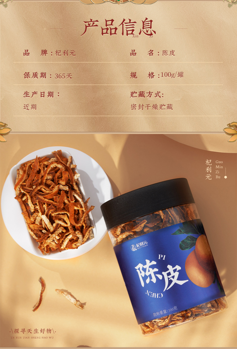 杞利元 陈皮干 新会陈皮丝100g