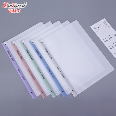 百利文QW332 旋转拉杆莫兰迪色抽杆夹文件夹5个混色装A4学生试卷整理夹资料文件装订旋转报告夹