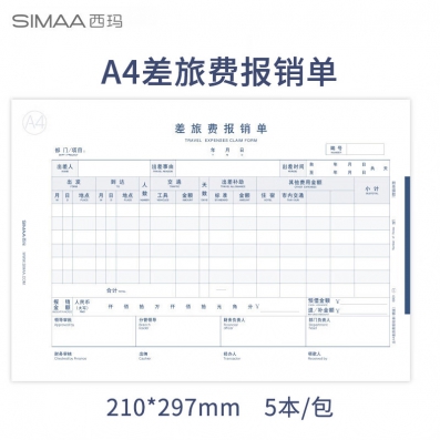 西玛 A4 差旅费报销单 210*297mm 50页/本 5本/包 8809