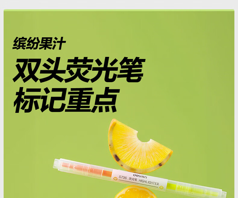 得力(deli)双头双色醒目荧光笔 学生考试重点标记笔 绘画涂鸦手账笔办公水性记号笔 3支6色S736