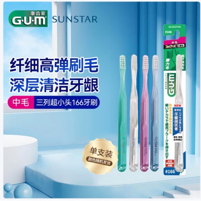 G·U·M康齿家#166中毛牙刷深层洁齿成人牙刷1支装(颜色随机发)