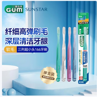 G·U·M康齿家#166软毛牙刷细毛护龈成人牙刷1支装(颜色随机发)