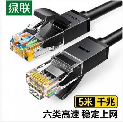 绿联NW102六类千兆高速宽带线CAT6类网络工程家用8芯双绞成品线黑色六类圆线-5米20162