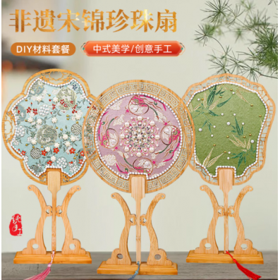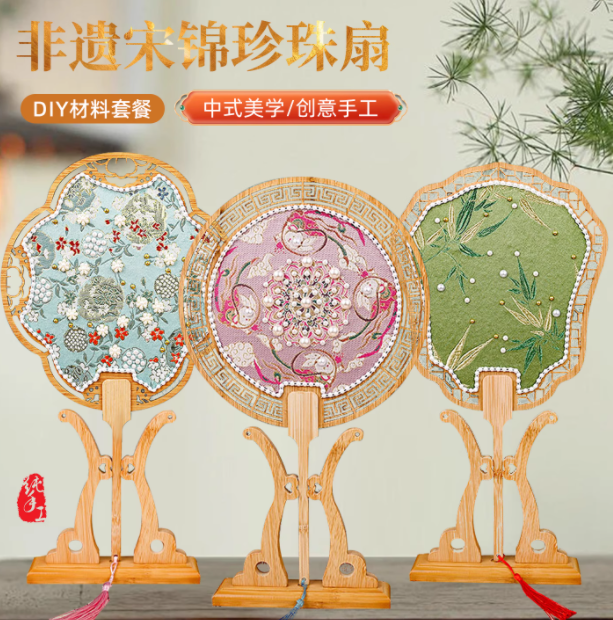 非遗仿宋锦手工珍珠扇