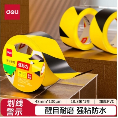 得力 黄黑安全警示胶带 警戒斑马线5S定位 48mm*20y 33770