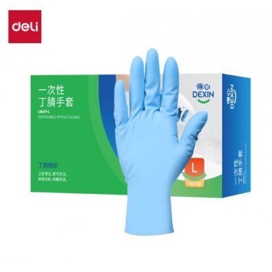 得力 一次性手套丁腈手套 100只 L码 LQ629-L 蓝色