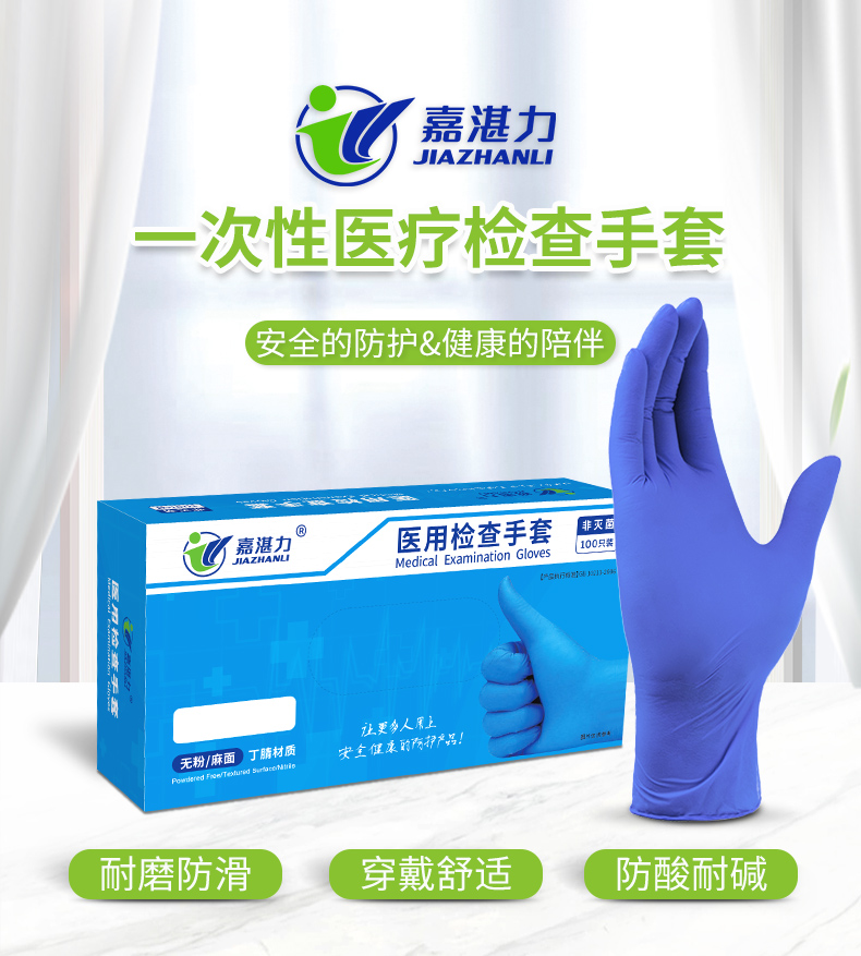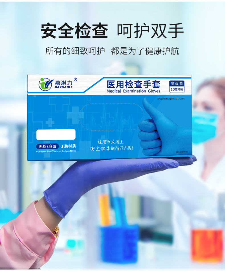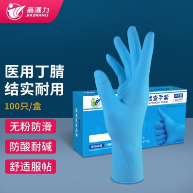 嘉湛力一次性手套丁腈晴橡胶无粉手套 紫蓝色丁腈(100只/盒) M(中号)