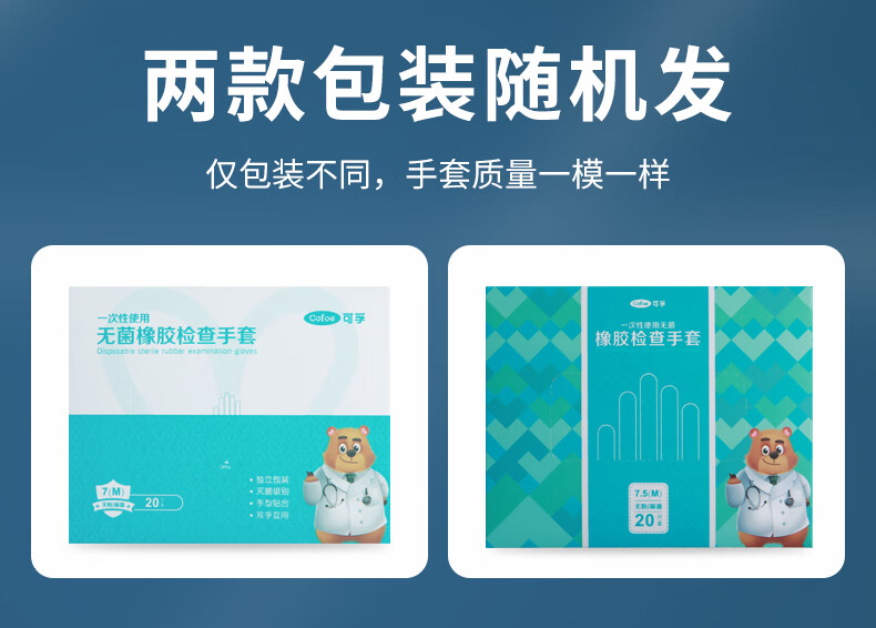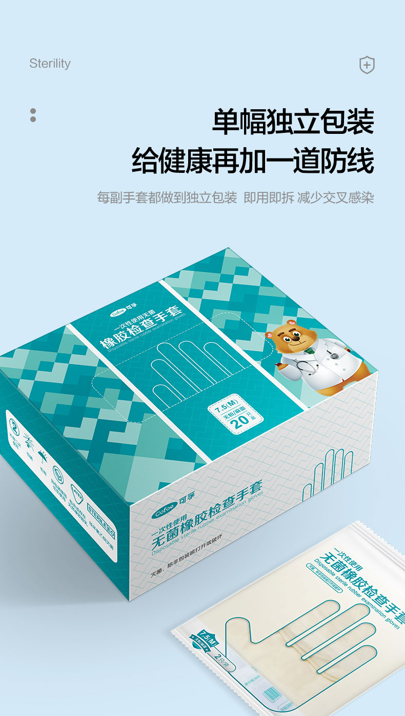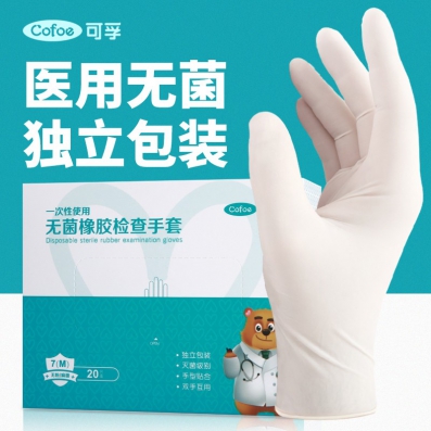 可孚一次性医用无菌橡胶手套 医疗外科无菌手套医生手术口腔检查卫生家用独立包装 M码【20只/盒】